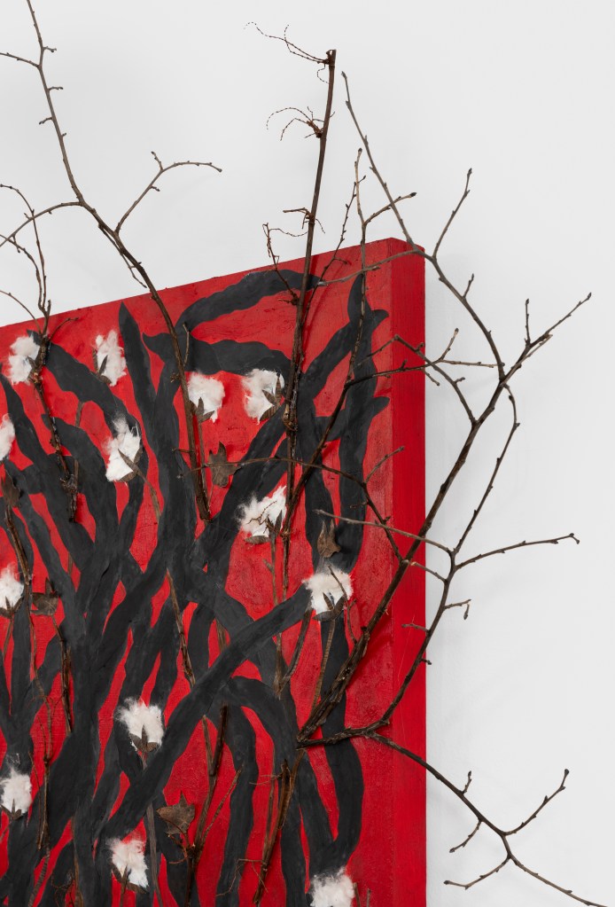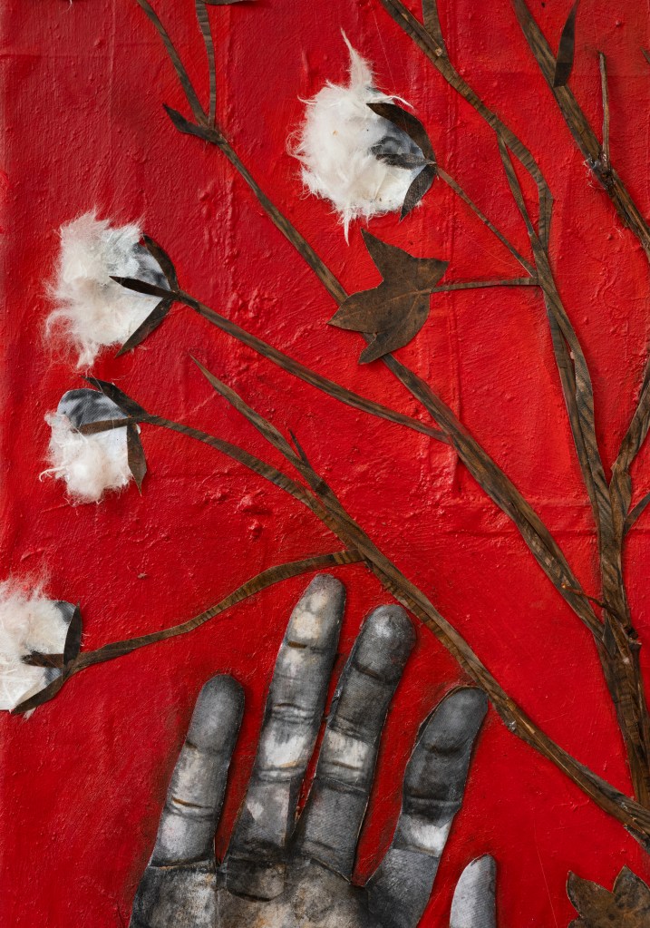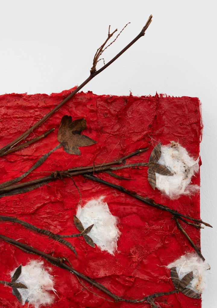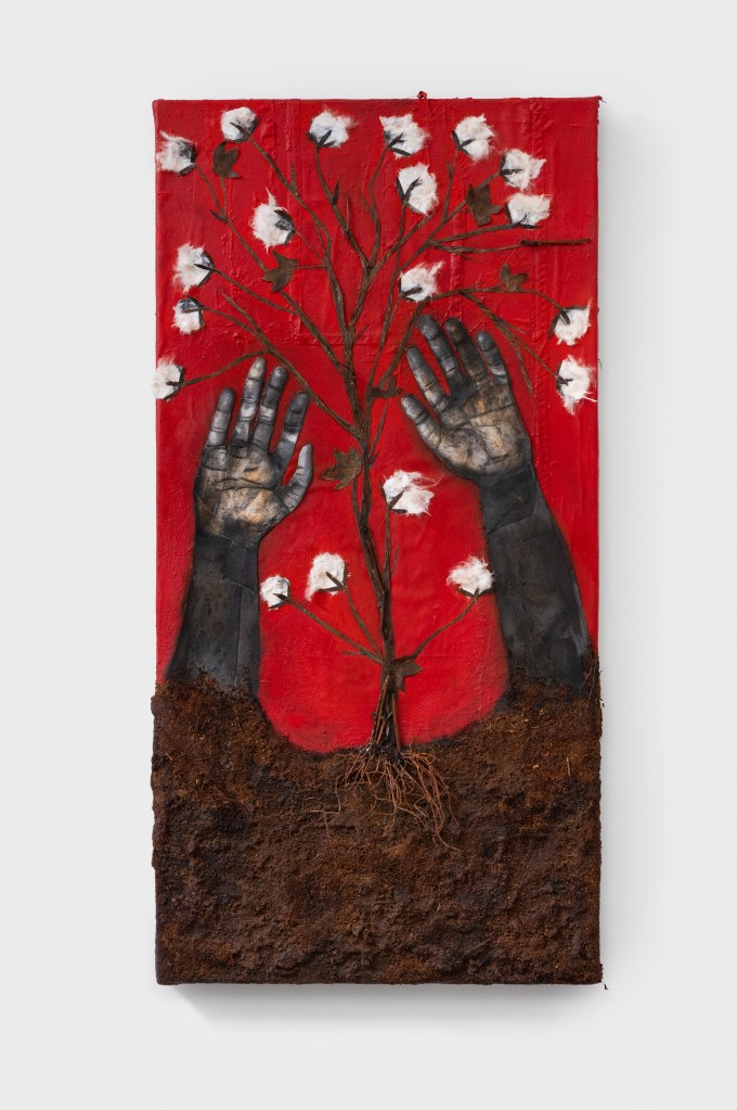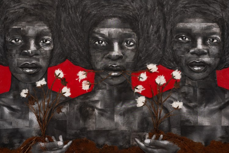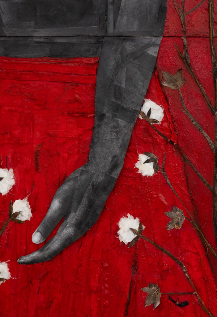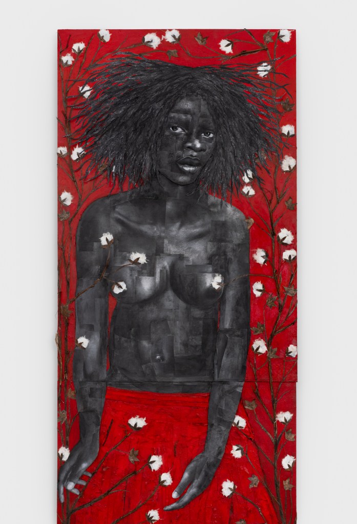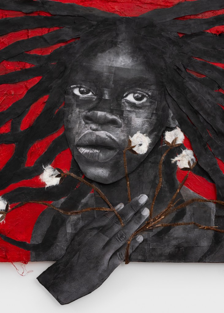 The Cotton Flower series uses portraiture to center Black women in historical discourse surrounding enslaved resistance. In slave societies, power was constructed through the use of race and gender. Enslaved women were exploited not only for their labor but also for their capacity to sustain the workforce through childbirth. The persistent threat of sexualized violence and forced familial separation pushed some women to subvert reproduction by engaging in bold acts of resistance. On cotton plantations, in particular, some enslaved women chose to ingest cotton roots to prevent pregnancy and induce abortions. By asserting their bodily autonomy, these Black women insurgents directly challenged the slave economy. In an effort to reconcile with and transform the profound pain of the history of enslavement into power, the Cotton Flower series re-envisions cotton plants as symbols of gendered resistance – instruments powerfully wielded by enslaved Black women to circumvent systems of oppression and fight for selfhood.