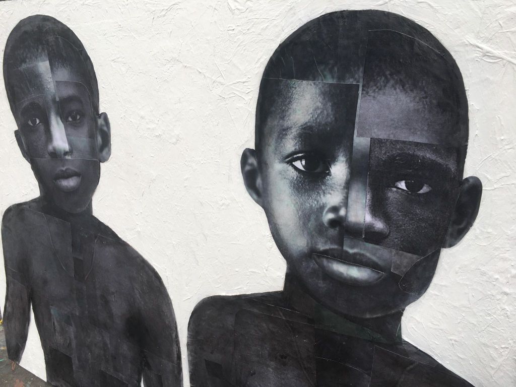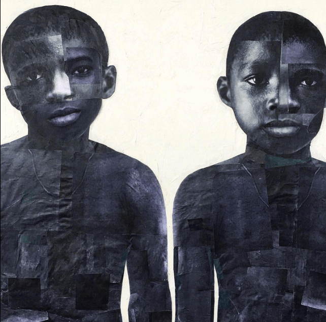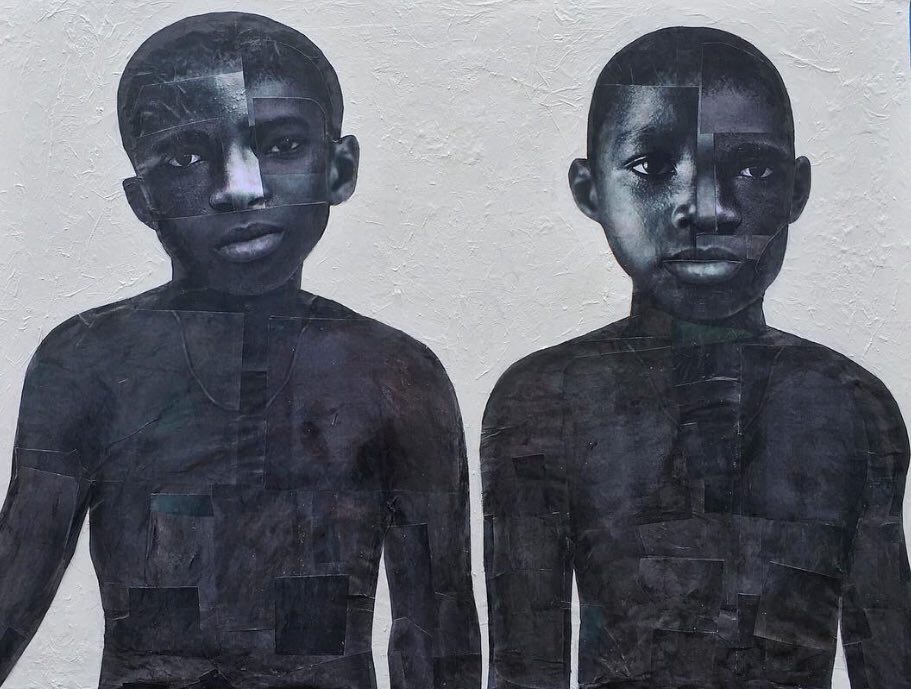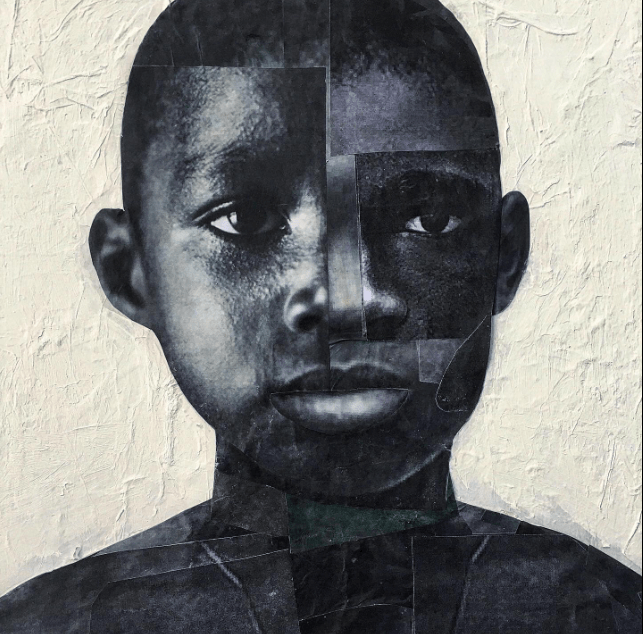 Acrylic and collage on wood panel