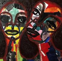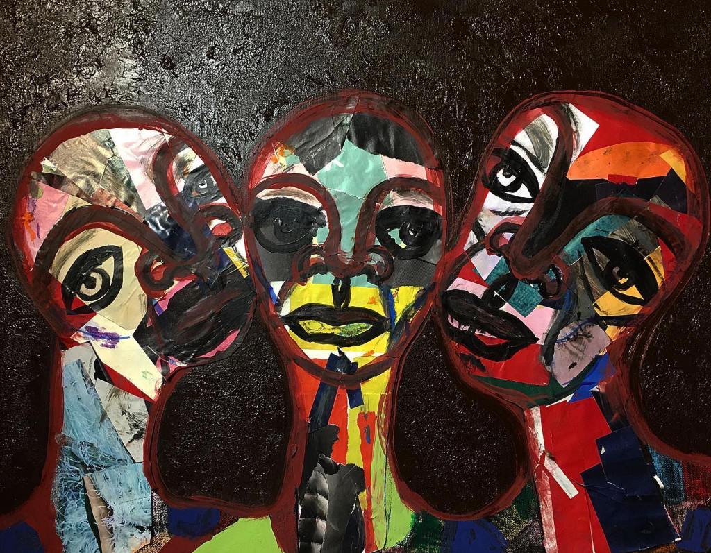 Oil, collage, pastels, and felt pen on canvas