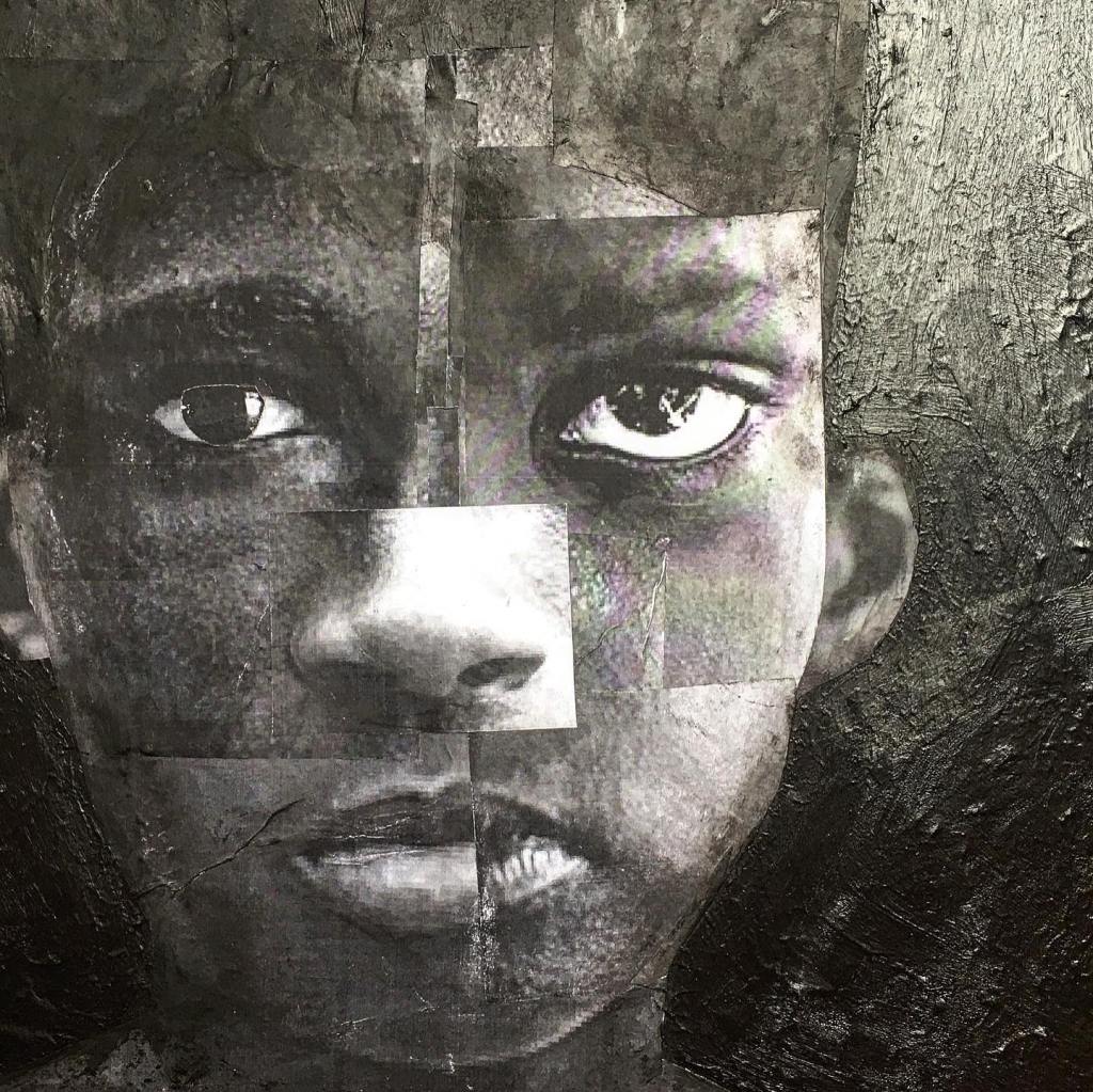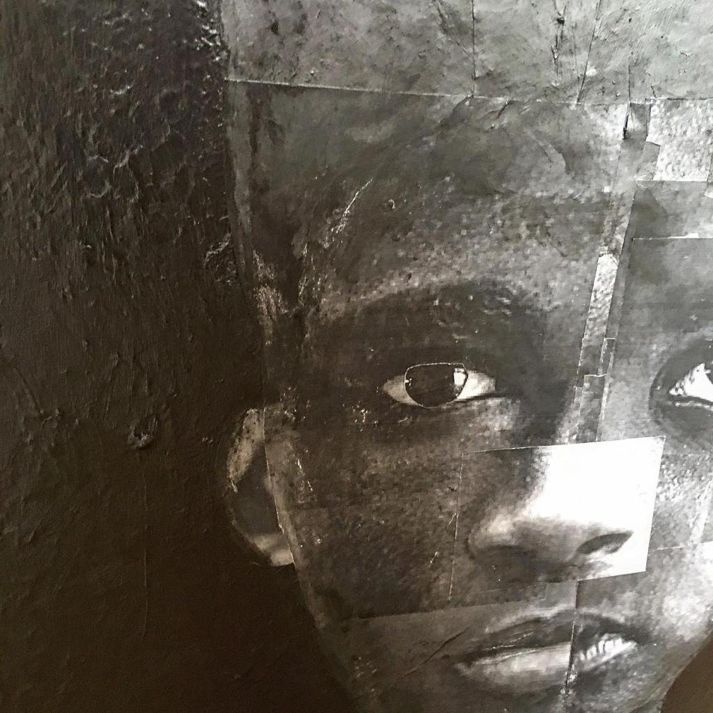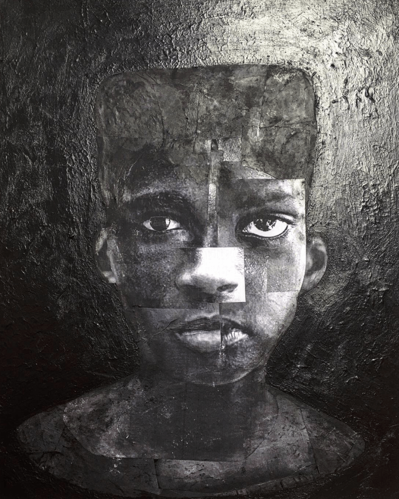 Acrylic and collage on wood panel